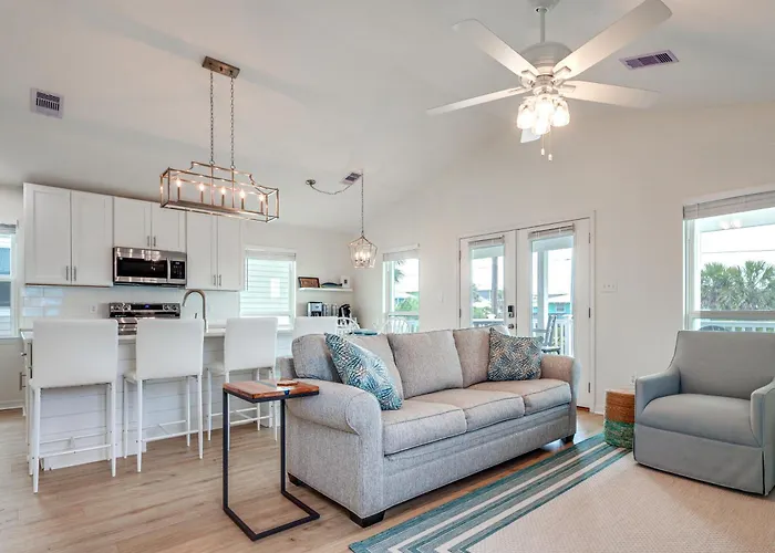 Gulf Shores Cottage With Water Views, Walk To Beach! biedt een oven, een kookplaat en keukengerei in een keuken. Gasten kunnen Amerikaanse gerechten proberen in Island Ice Cream, gelegen op 450 meter. De dichtstbijzijnde luchthaven Pensacola Regional bevindt zich op 70 km afstand van deze gastvrije villa.